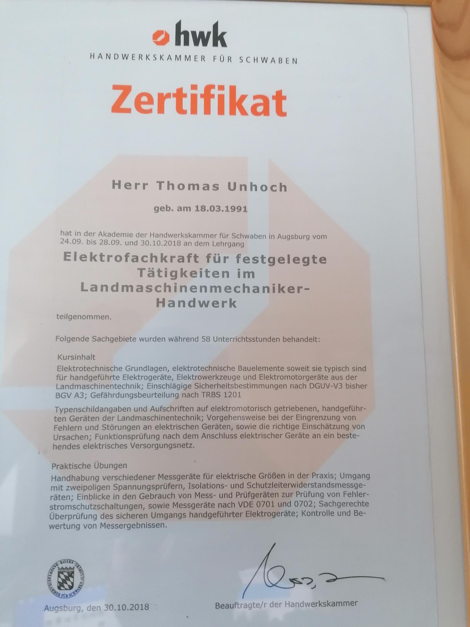 Elektrofachkraft im Landmaschinenmechaniker-Handwerk