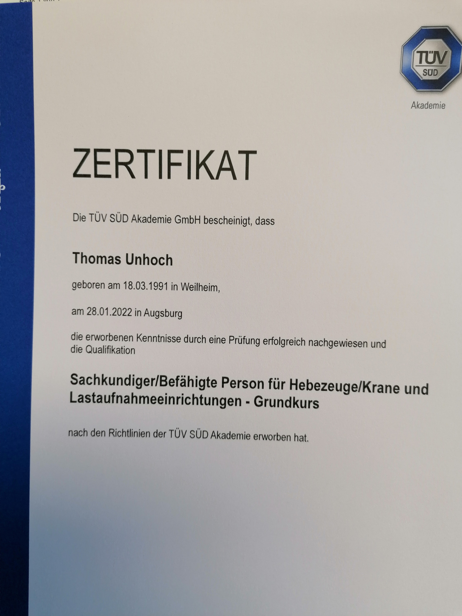Sachkundiger für Hebezeuge/Krane & Lastaufnahmeeinrichtungen